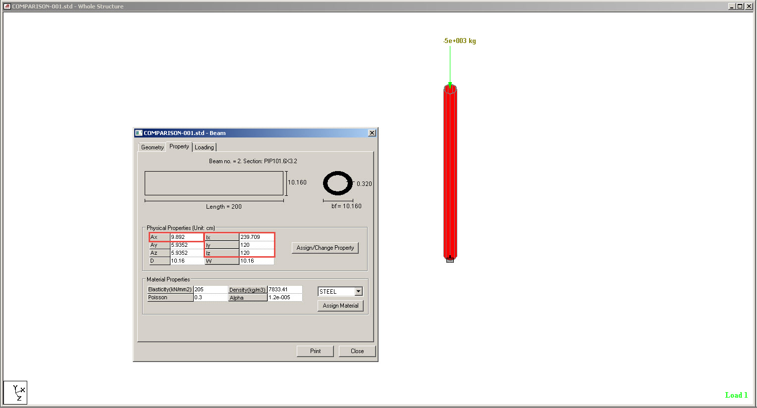 ผมมี หน้าตัดเหล็กแบบสี่เหลี่ยมกลวง และ หน้าตัดเหล็กแบบกลมกลวง อยู่ 2 ชิ้นส่วน (ดูรูปที่ 1) หากดูในสี่เหลี่ยมสีแดง (ดูรูปที่ 2 และ 3) ก็จะพบว่า คุณสมบัติของหน้าตัดเหล็กแบบสี่เหลี่ยมกลวง และ หน้าตัดเหล็กแบบกลมกลวง จะมีขนาดของพื้นที่หน้าตัดที่เท่าๆ กันนั่นก็คือประมาณ 9.89 CM^(2) นะครับ ดังนั้น